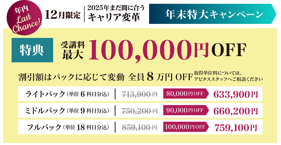 差額は約10万円強。この差額で「単位取得の楽さ」と「安心感」を買うなら、アビタスは決して高くありません。