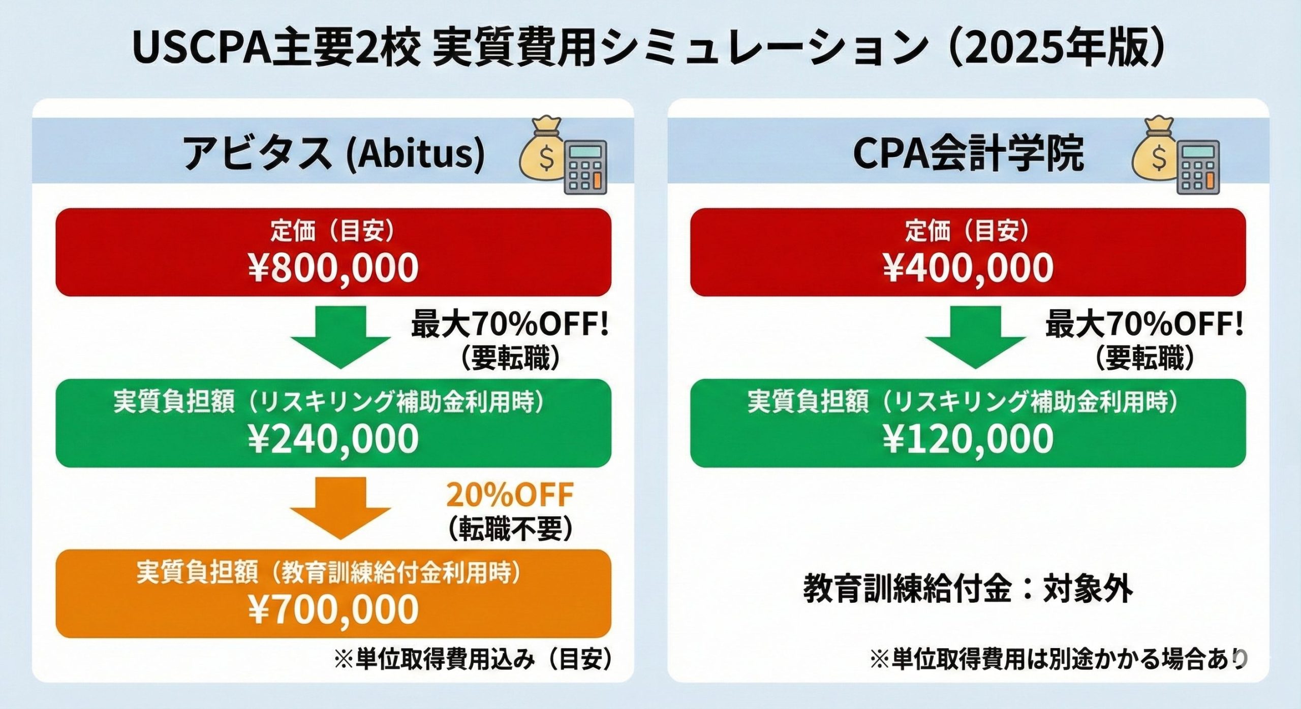 「USCPAを目指すならアビタスが無難」 ネットで調べると必ずこう書かれていますが、同時に「受講料が高い」「他校(CPA会計学院など)の方が安いのでは?」という疑問にぶつかりませんか?