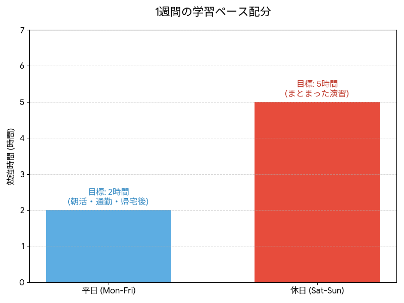 | 期間 | 週あたりの目安 | 1日のスケジュールイメージ |